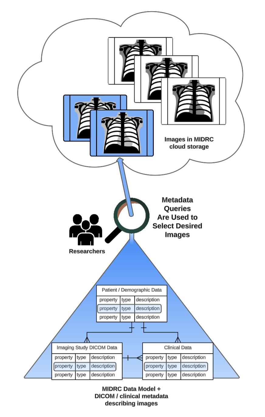 MIDRC uses CDEs throughout its data model to standardize properties and acceptable values so that data are ingested consistently across sites and datasets. This standardization also allows researchers to confidently combine MIDRC data with other repositories that use the same or related CDEs.